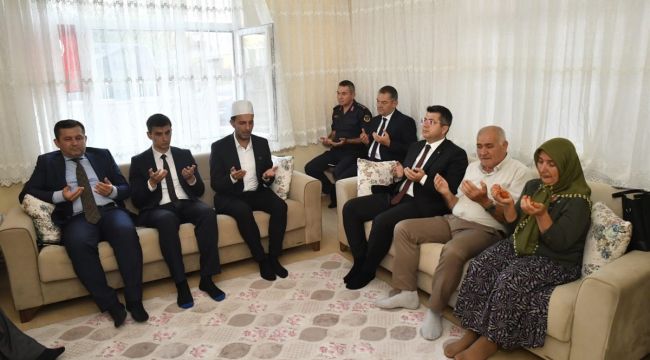 Şehitler için dua edilen ziyarette, İlçe Kaymakamı Hakan Yavuz Erdoğan, İl Jandarma Komutanı Albay Abdülkadir Seri ve Aile ve Sosyal Hizmetler İl Müdürü Bilgin Özbaş da yer aldı. (AA)