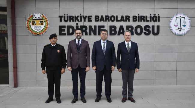 Edirne İl Emniyet Müdürü Mustafa Alçalar ve İl Jandarma Komutanı Taşkın Keleş’in eşlik ettiği ziyarette Vali Kürşat Kırbıyık’ı Baro Başkanı Av. Gökhan Karakoç tarafından karşılandı.