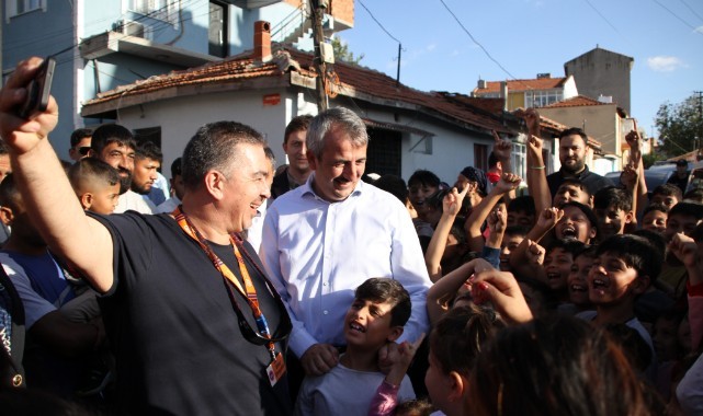 Çocuklara çeşitli hediyeler veren Sezer, mahalledeki vatandaşlarla da sohbet etti.