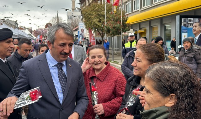 Edirne Valisi Yunus Sezer, 8 Mart Kadınlar Günü dolayısıyla kadınlara karanfil armağan etti.