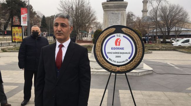 Edirne’de 33. Vergi Haftası dolayısıyla tören düzenlendi. Edirne Vergi Dairesi Başkanı Ergün Aslan’ın anıta çelenk bırakmasıyla başlayan tören, saygı duruşu ve akabinde İstiklal Marşı’nın okunmasıyla sona erdi.