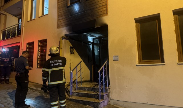 Edirne'de bir apartmanın girişine park edilen motosiklette çıkan yangın itfaiye ekiplerinin müdahalesiyle söndürüldü.