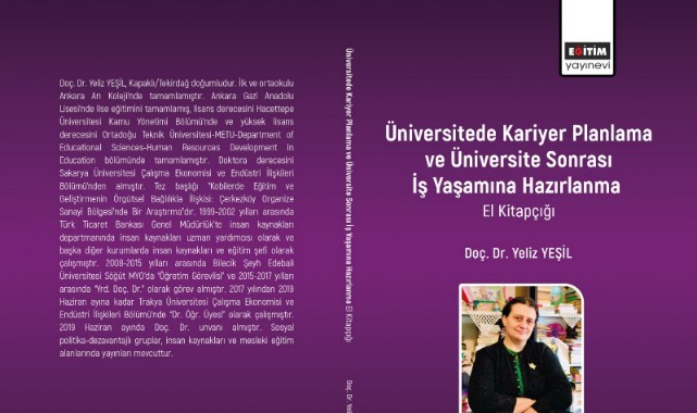 Doç. Dr. Yeliz Yeşil’in kaleme aldığı “Üniversitede Kariyer Planlama ve Üniversite Sonrası İş Yaşamına Hazırlanma” kitabı, Eğitim Yayınevi’nden çıktı. Yeni yayımlanan kitapta, üniversite öğrencilerine yönelik CV hazırlama, kariyer planlama, iş yaşamı ve mülakatlara hazırlanma konusunda rehberlik edecek bilgiler yer alıyor.