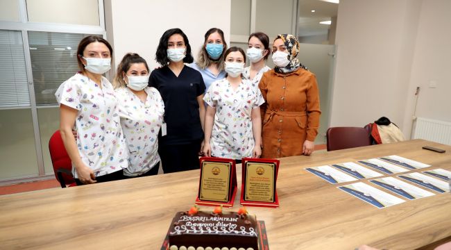 Yeni doğan bebeklerin hayata tutunuş hikâyeleri ile yaşam mücadelelerini konu alan ödüllü videoya imza atan hemşireler; Refiye Zafer Dinçkol, Begüm Çoban, Betül Baysal, Büşra Yazıcı, Esra Konuk, Hacer Engin, Duygu Eseroğlu Türkmen, Leyla Avcıbaşı, Meltem Servet Yılmaz, Nagihan Karaca ve Perihan Muhtaroğlu teşekkür belgelerini ve plaketlerini aldı. Rektör Yardımcısı Prof. Dr. Murat Türkyılmaz, Hastane Başhekimi Prof. Dr. Abdullah Taş, Başhekim Yardımcısı Prof. Dr. Nurettin Taştekin ve Hemşirelik Hizmetleri Müdürü Öğr. Gör. Saadet Elmas’ın bulunduğu törende ayrıca Çocuk Klinikleri Koordinatör Hemşiresi Refiye Zafer Dinçkol’a 29. Ulusal Neonatoloji Kongresi’nde sunmuş olduğu “Prematüre Bebeği Olan Annelere Verilen Eğitimin Bebeğin Büyüme Gelişmesine ve Annelerin Kaygı Düzeylerine Etkisi” isimli bildiri ile “Hemşire Sözel Bildiri Ödülü”ne layık görüldüğü için teşekkür belgesi verildi.